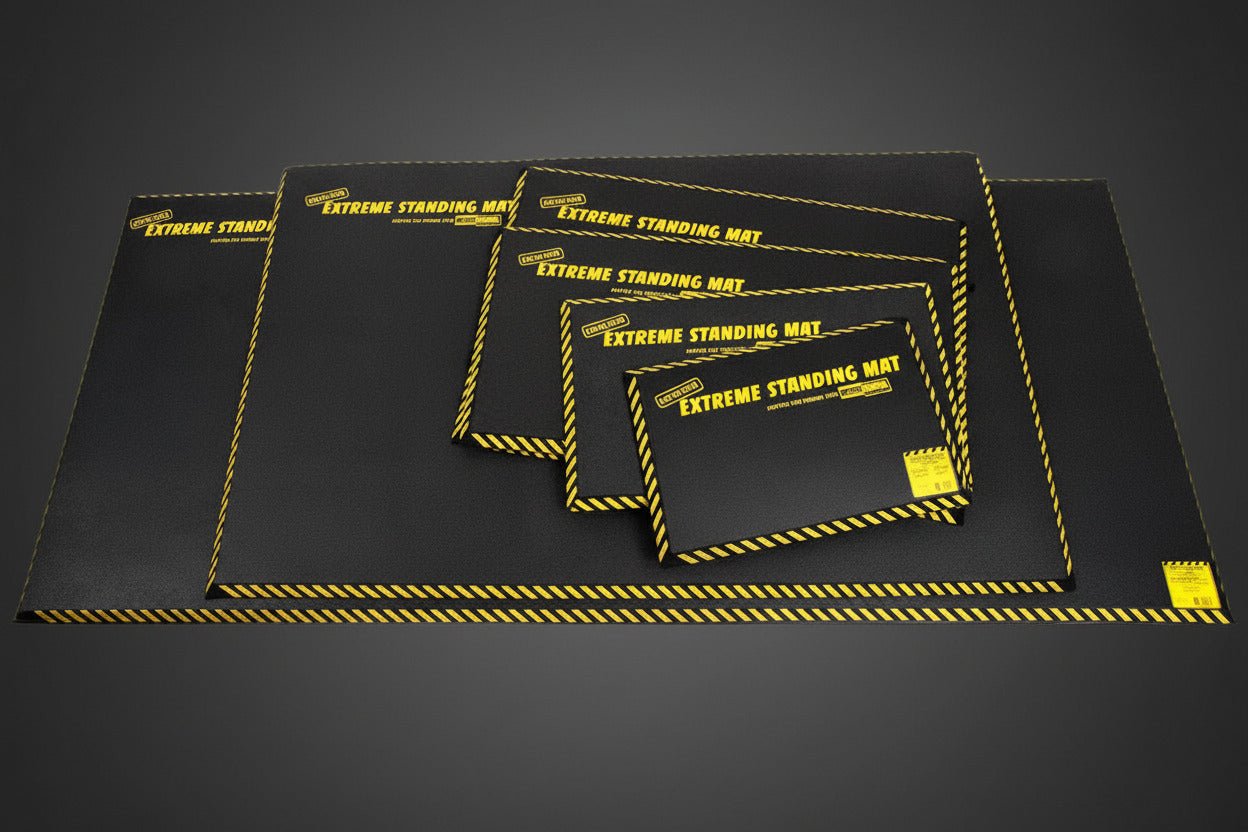 This is the ultimate shock absorber for extreme standing or kneeling. Extreme Standing Mats are made of one-inch thick closed cell foam rubber. They eliminate high frequency vibrations and keep the body in gentle motion to improve circulation and joint lubrication.