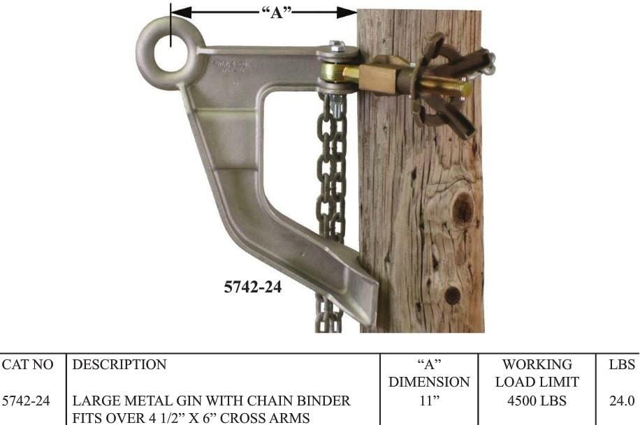 LARGE METAL GIN WITH CHAIN BINDER FITS OVER 4 1/2” X 6” CROSS ARMS