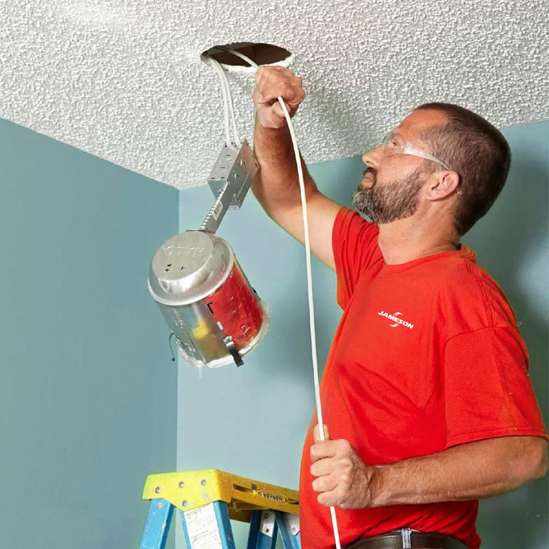 Jameson is the original manufacturer of non-conductive fiberglass glow rods. The 24′ kit is perfect for running wire through drop ceilings, attics, floors, walls and crawl spaces. It’s high strength and flexibility allows you to handle turns easily without breakage. All of our rods feature the same size threaded ferrules for maximum versatility. Kit includes three 6′ x 1/4″ rods, two 3′ x 1/4″ rods, one bullet nose with eyelet, one hook, and packaged in a plastic tube with cap to keep rods and accessories together.