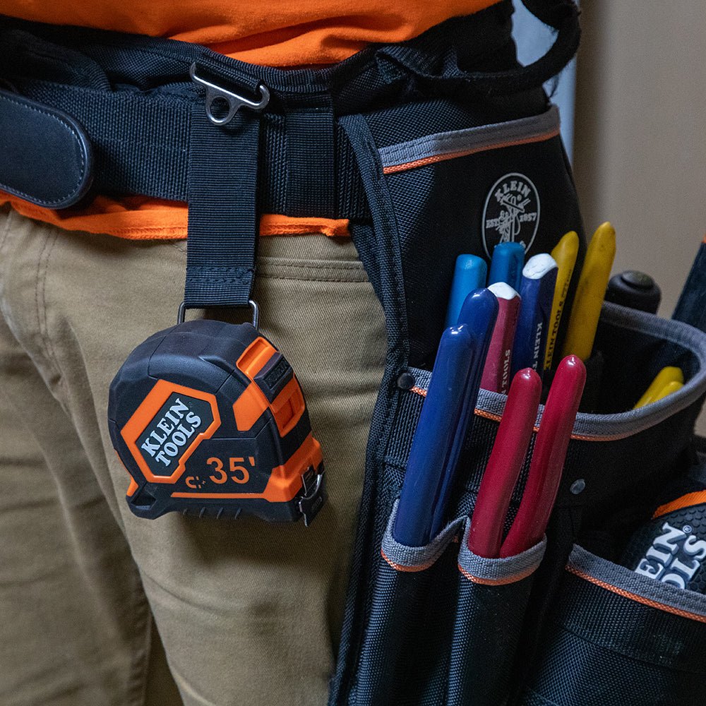 Klein Tools Tape Measures deliver performance and durability expected by professional tradespeople. Safeguarded by a thick and durable protective nylon-coating, the tough blade stands out to 13-Foot with a 16-Foot reach. Able to endure the toughest of jobsite conditions, this 35-Foot Tape Measure features a strong magnetic double hook, easy-to-read bold lines, and a retraction brake.