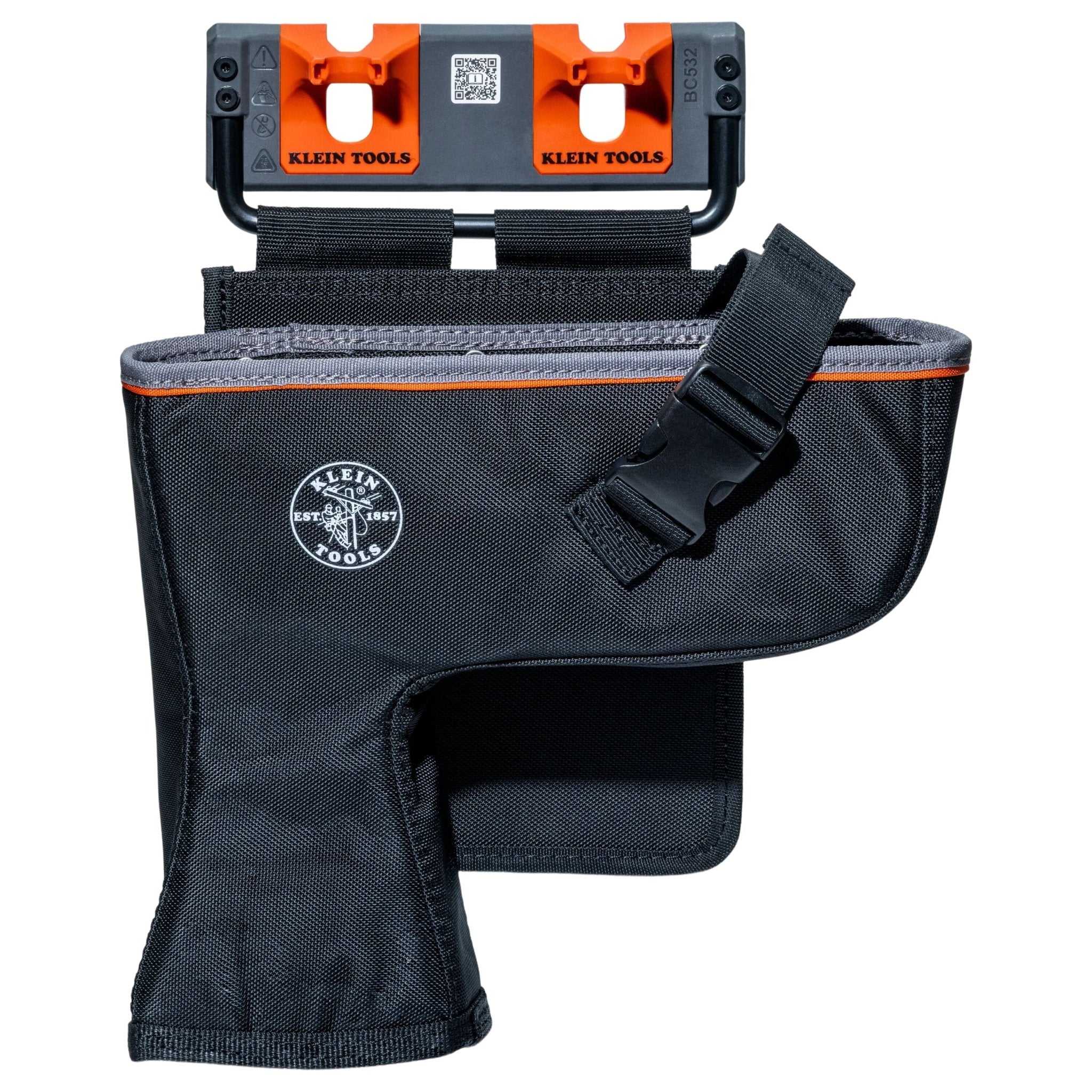 Klein Tools Impact Holder keeps impact guns secure and ready for action. Designed to fit 7/16-Inch and standard drills, it features a snag-free cone, socket-on storage, and a retention buckle. Built tough and BWC S-Hook compatible, it's made for real utility work.