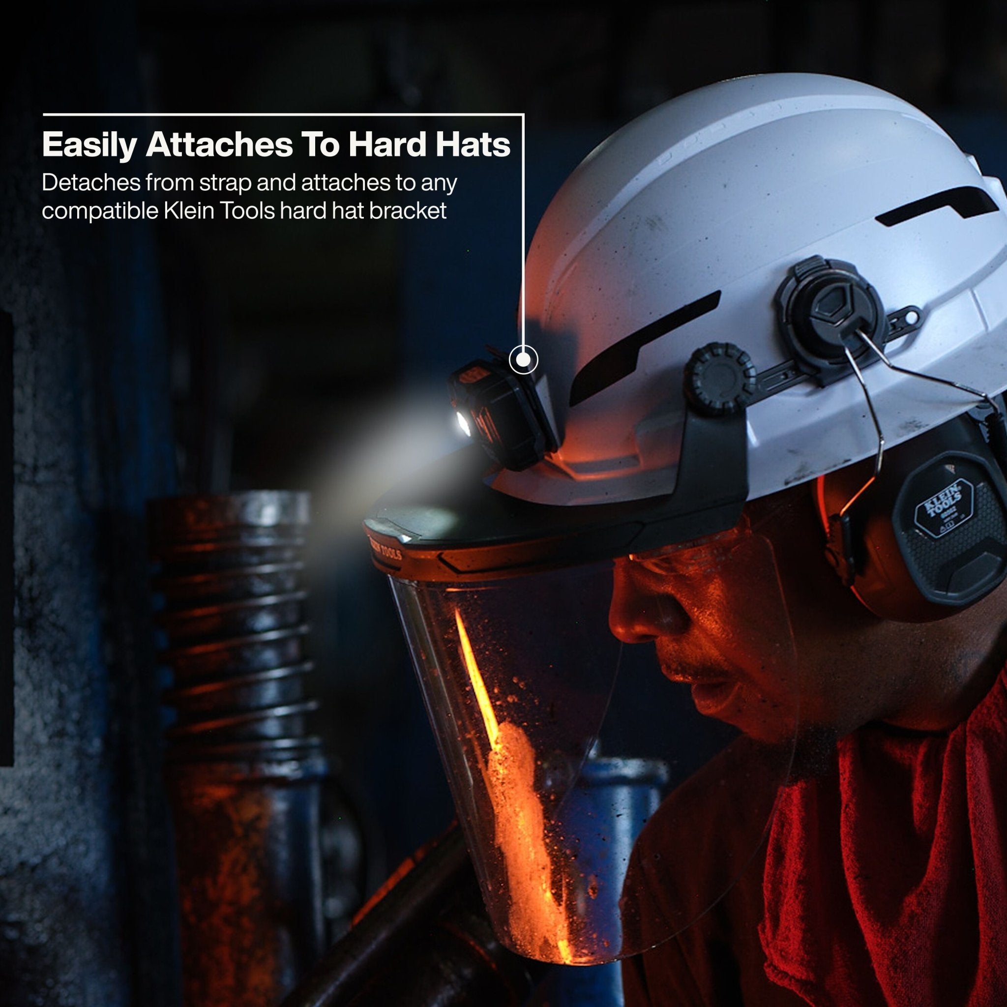 - Bracket attaches directly to Klein Hard Hats (bracket-equipped models)
