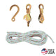 Klein block and tackle use high-quality, 3/8-Inch (10 mm) diameter rope. Light, galvanized-steel shell blocks are fitted with snubbing hooks to hold the load. This package features two blocks with a standard anchor hook with a maximum safe load of 750-pound (340 kg).