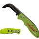 This new range compliments the Spring Assisted Lineman Knives that have been so successful. What is different is that ONE button allows you to FLIP your knife open or drop it closed while keeping your GLOVES ON while only using ONE hand! The blade gravity design requires you to flip it open with the button pushed and once you push the button from an open position it drops closed. So, safety wise in addition to using with your gloves on, the knife will only open or close when the push button is activated. There are three blade options including the new and improved SAFETY Blade design which will minimize if not eliminate unwanted cuts while maximizing proper skinning and cutting applications.