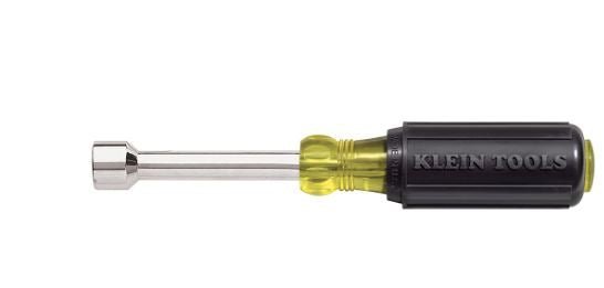 Klein nut drivers hollow shaft facilitates work on stacked circuit boards or other long bolt applications. Premium chrome-plated for smooth feel and corrosion resistance. The handle end is color coded for easy identification. The patented Tip-Ident® quickly identifies nut driver and size.