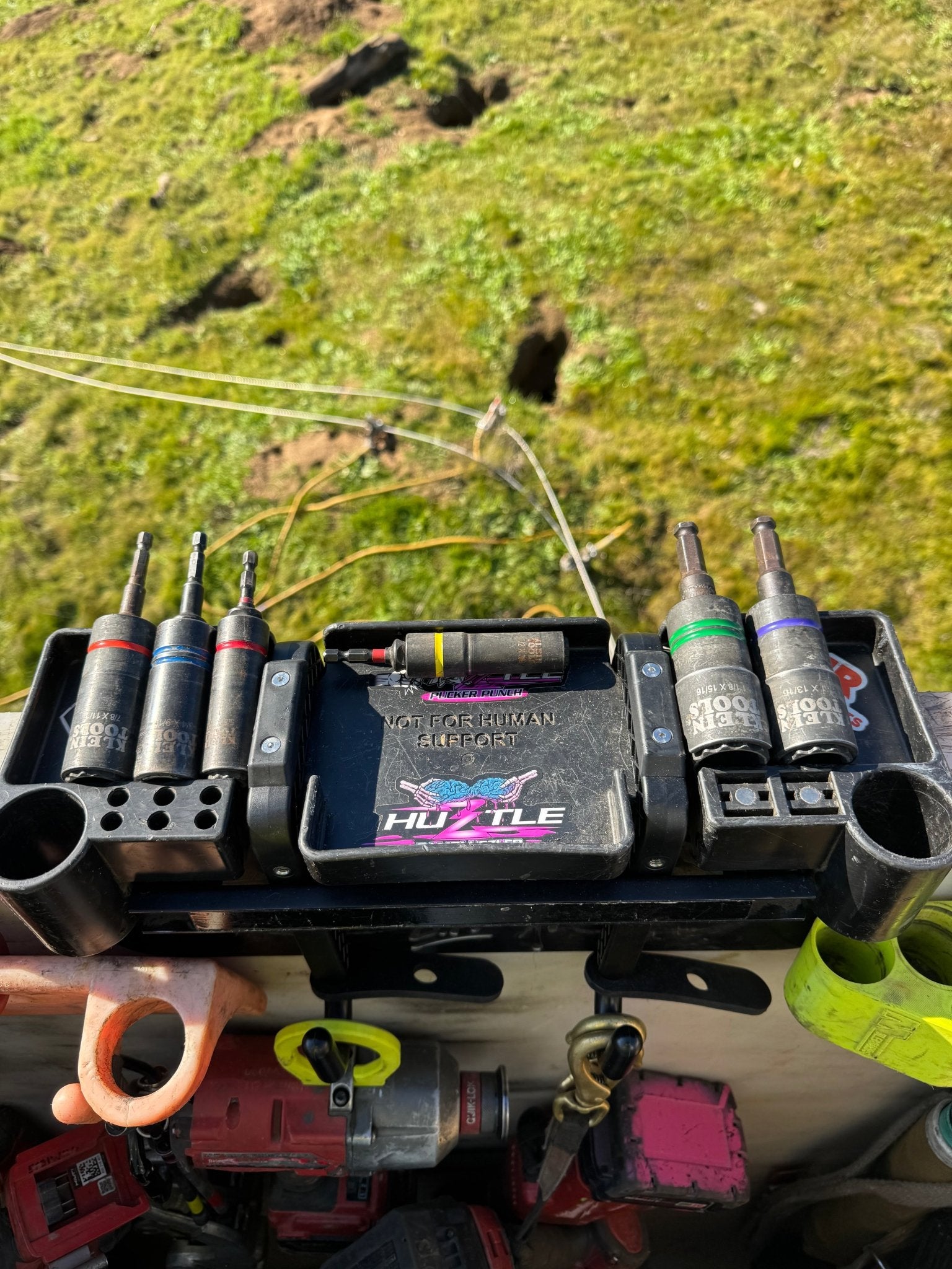 Dual socket/impact slots for staging tools in tight or energized spaces