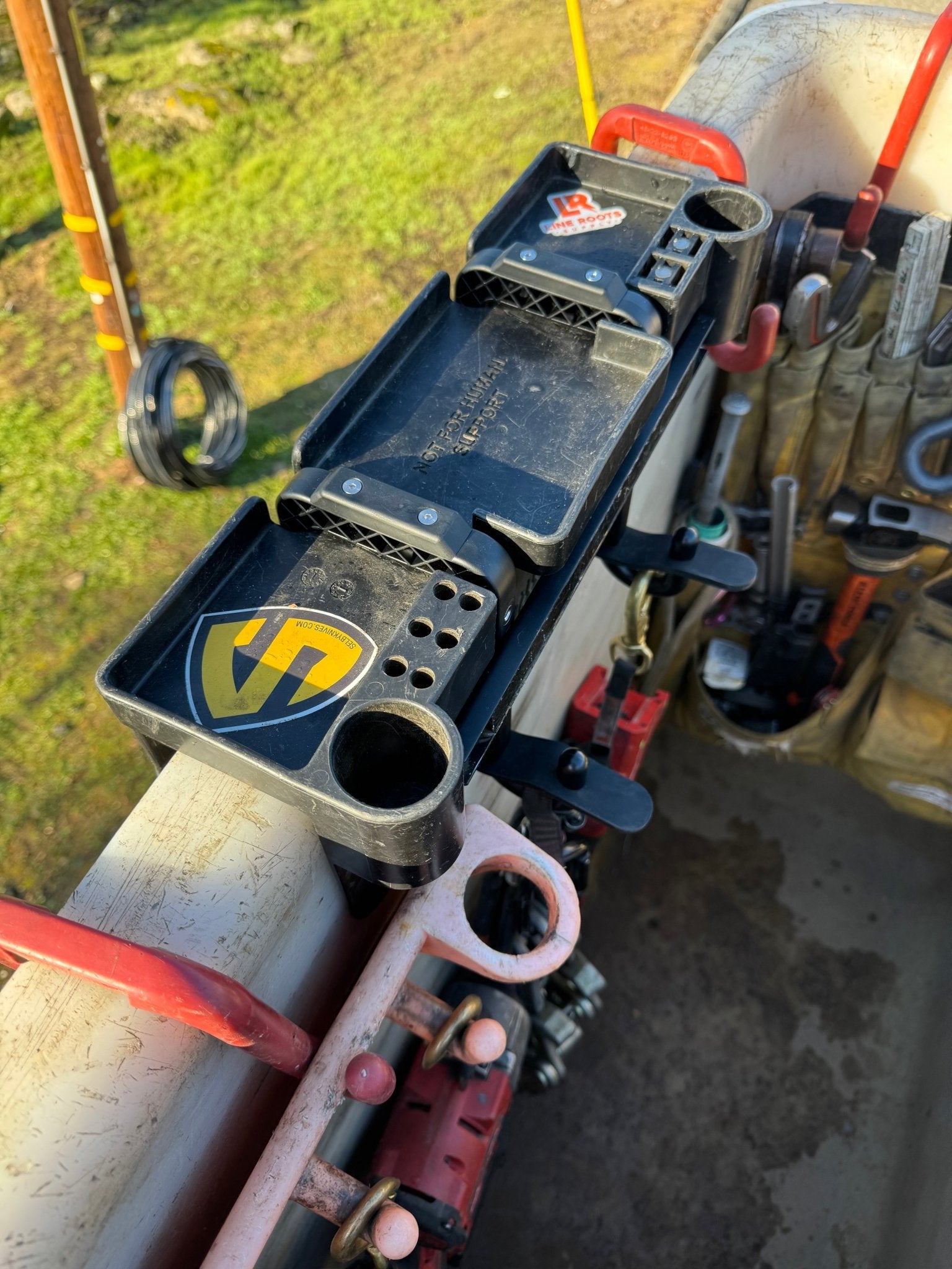 The Tea Tray is a patent pending, universal bucket tool tray designed to improve safety, organization, and efficiency during energized and elevated work. It attaches to any standard bucket hook, making it fully compatible with every insulated bucket in the field. It helps to eliminates clutter, reduces dropped-object risk, and streamlines workflow in the bucket.